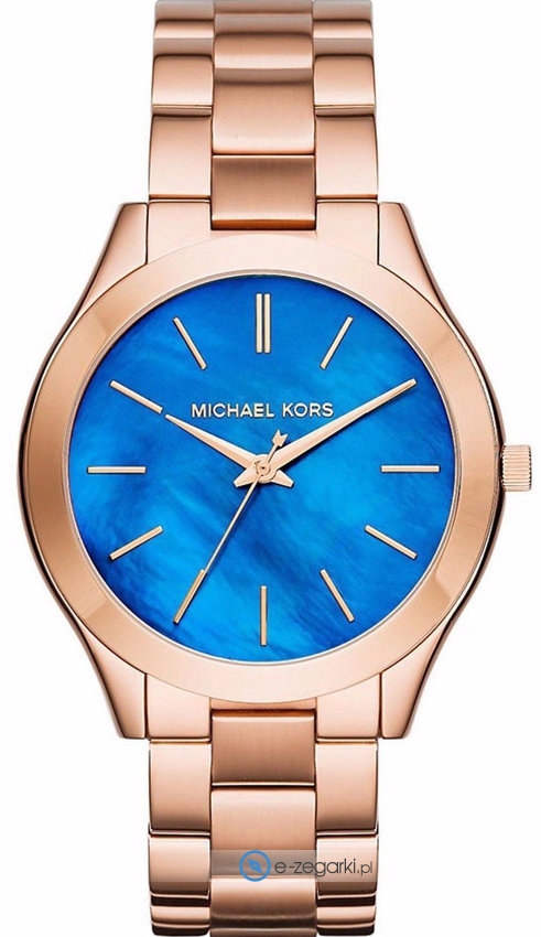 Damski zegarek Michael Kors MK3494 to zegarek, który dzięki swemu wzornictwu zawsze będzie prezentował się dobrze. Wysokiej trwałości tarczę zegarka pokryto niebieskim kolorem. Aktualna godzina przedstawiona jest w sposób analogowy co niezmiernie łatwo pozwala ją odczytać. Koperta została ozdobiona kolorem różowo złotym szeroka jest na 42 mm oraz ma grubość 8 mm - posiada okrągły kształt.
