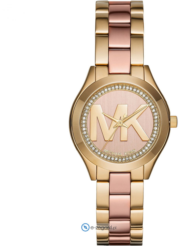 Zegarek damski MK3650 marki Michael Kors to ciekawa pozycja dla osób ceniących sobie dbałość o szczegóły oraz sprawne funkcjonowanie mechanizmów. Charakteru nadaje wysokiej klasy cyferblat w kolorze różowo złotym. Godzina prezentowana jest w sposób analogowy co bez trudu pozwala ją odczytać. Koperta jest pokryta kolorem złotym szeroka jest na 33 mm oraz ma grubość 9 mm - charakteryzuje się okrągłym kształtem.