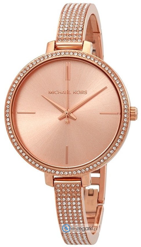 Damski zegarek Michael Kors MK3785 to zegarek, który dzięki swemu wzornictwu zawsze będzie prezentował się dobrze. Charakter zapewnia wysokiej klasy cyferblat w kolorze różowo złotym. Zaprezentowana metodą analogową aktualna godzina jest czytelna i łatwa do odczytania. Koperta jest w kolorze różowo złotym szeroka jest na 36 mm oraz ma grubość 7 mm - ma okrągły kształt.