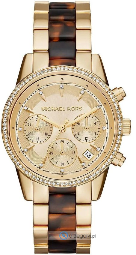 Damski zegarek Michael Kors MK6322 to zegarek, który dzięki swemu wzornictwu zawsze będzie prezentował się dobrze. Niestereotypowy wygląd zegarka osiągnięto także dzięki tarczy w kolorze złotym. Pokazana metodą analogową aktualna godzina jest czytelna i łatwa do odczytania. Koperta w odcieniach koloru złotego szeroka jest na 37 mm - posiada okrągły kształt.