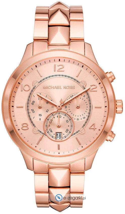 Model MK6713 marki Michael Kors to stylowy zegarek naręczny damski, który wyposażono w ciekawe rozwiązania i funkcje. Niebanalny wygląd zegarka uzyskano także dzięki tarczy w kolorze różowo złotym. Zegarek ten pokazuje godzinę w formacie analogowym dzięki temu odczyt jest bezproblemowy. Koperta jest w kolorze różowo złotym szeroka jest na 45 mm - posiada okrągły kształt.