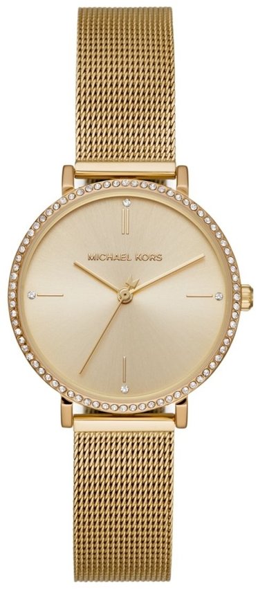 Zegarek damski MK7121 marki Michael Kors to dobra pozycja dla osób ceniących sobie dbałość o szczegóły jak również bezproblemowe zachowanie mechanizmów. Stylu dodaje wysokiej klasy cyferblat w kolorze złotym. Godzina prezentowana jest w sposób analogowy co bez trudu pozwala ją odczytać. Koperta w odcieniach koloru złotego szeroka jest na 32 mm - ma okrągły kształt.