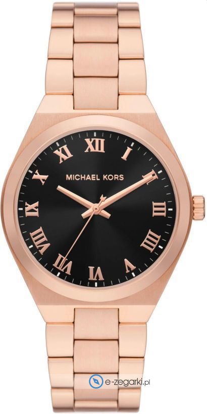 Model MK7392 marki Michael Kors to stylowy zegarek naręczny damski, który wyposażono w pomysłowe rozwiązania oraz funkcje. Tarcza zegarka jest w kolorze czarnym. Aktualna godzina pokazywana jest w sposób analogowy co niezmiernie łatwo pozwala ją odczytać. Koperta w barwach koloru różowo złotego szeroka jest na 37 mm oraz ma grubość 9 mm - posiada okrągły kształt.