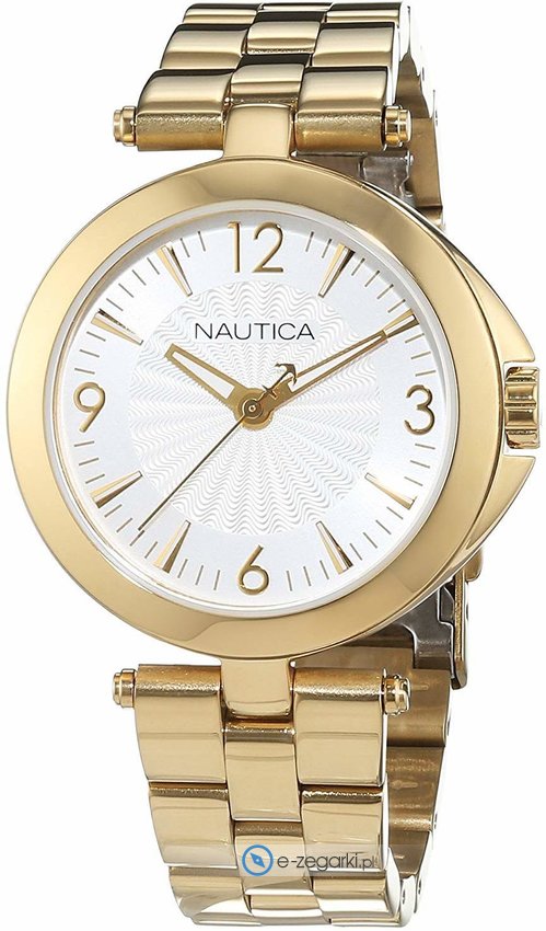 Zegarek damski NAD14001L marki Nautica to ciekawa propozycja dla osób ceniących sobie dbałość o szczegóły oraz bezawaryjne funkcjonowanie mechanizmów. Zegarek ten pokazuje aktualny czas w formacie analogowym dzięki temu odczyt jest bardzo łatwy. Koperta jest ozdobiona kolorem złotym szeroka jest na 35 mm.