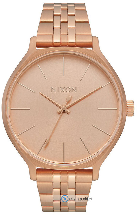 Damski zegarek A1249-897 z kolekcji Nixon Base Clique marki Nixon to połączenie stylu oraz oryginalnych mechanizmów. Charakter zapewnia wysokiej klasy tarcza w kolorze różowo złotym. Zegarek ten pokazuje aktualny czas w formacie analogowym dzięki temu odczyt jest bezproblemowy. Koperta szeroka jest na 38 mm oraz ma grubość 8 mm - w kształcie okrągłym.