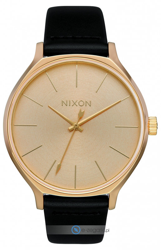 Zegarek damski A1250-510 marki Nixon to idealne połączenie funkcjonalności a także modnego wzornictwa. Model ten pochodzi z serii Nixon Base Clique Leather. Wysokiej trwałości cyferblat zegarka pokryto złotym kolorem. Godzina pokazywana jest w sposób analogowy co intuicyjnie pozwala ją odczytać. Koperta jest w kolorze złotym szeroka jest na 38 mm oraz ma grubość 8 mm - wyróżnia się okrągłym kształtem.