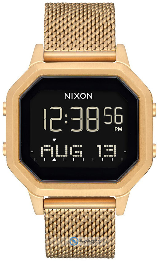Damski zegarek A1272-502 z serii Nixon Siren Milanese marki Nixon to połączenie smaku oraz nieprzeciętnych funkcji. Niebanalną budowę czasomierza osiągnięto z pomocą tarczy w kolorze czarnym. Zaprezentowana metodą cyfrową aktualna godzina jest czytelna i szybka do odczytania. Koperta jest w kolorze złotym szeroka jest na 36 mm oraz ma grubość 11 mm.