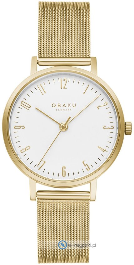 Damski zegarek Obaku V248LXGIMG to zegarek, który dzięki swemu wzornictwu zawsze będzie prezentował się dobrze. Ciekawą budowę czasomierza osiągnięto dzięki tarczy w kolorze białym. Zegarek ten prezentuje aktualny czas w formacie analogowym dzięki czemu odczyt jest bardzo łatwy. Koperta w odcieniach koloru złotego szeroka jest na 32 mm - cechuje się okrągłym kształtem.