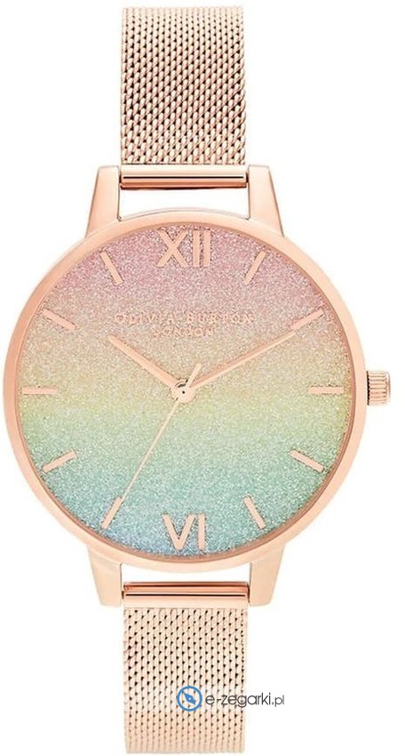 Zegarek damski OB16RB18 marki Olivia Burton to dobra propozycja dla ludzi ceniących sobie dbałość o detale jak również bezproblemowe funkcjonowanie mechanizmów. Zegarek ten prezentuje aktualny czas w formacie analogowym dzięki temu odczyt jest bardzo łatwy. Koperta szeroka jest na 34 mm - w kształcie okrągłym.