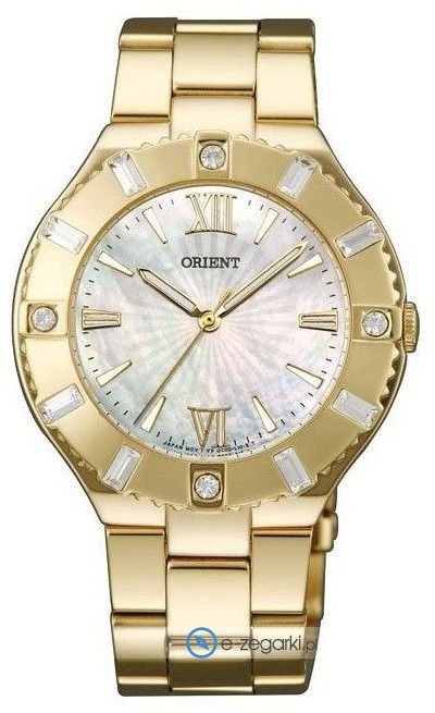 Zegarek damski FQC0D003W0 marki Orient to stylowe połączenie funkcjonalności oraz ciekawego wzornictwa. Cyferblat zegarka jest w kolorze perłowym. Zegarek ten pokazuje aktualny czas w formacie analogowym dzięki czemu odczyt jest intuicyjny. Koperta w odcieniach koloru złotego szeroka jest na 36 mm oraz ma grubość 8 mm - charakteryzuje się okrągłym kształtem.