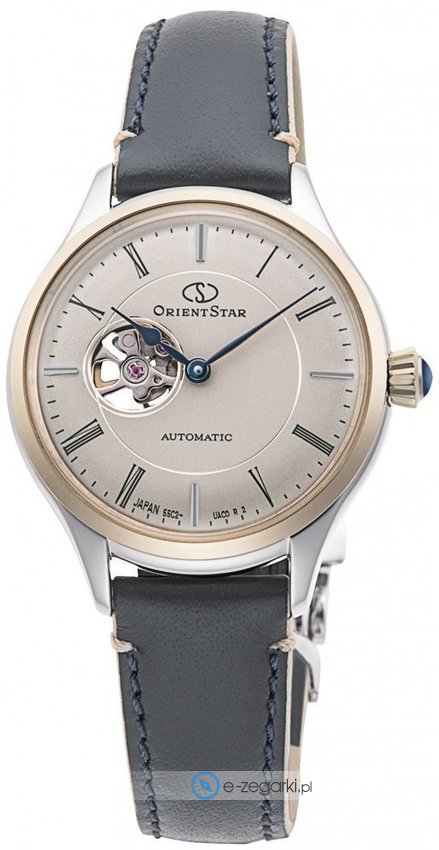 Damski zegarek Orient Star RE-ND0011N00B to zegarek, który dzięki swemu wzornictwu zawsze będzie prezentował się dobrze. Wysokiej jakości cyferblat zegarka ozdobiono złotym kolorem. Pokazana metodą analogową aktualna godzina jest czytelna i łatwa do odczytania. Koperta została ozdobiona kolorem srebrnym szeroka jest na 30 mm - w kształcie okrągłym.