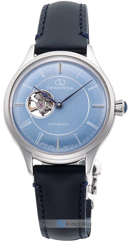 Zegarek damski RE-ND0012L00B marki Orient Star to dobre połączenie funkcjonalności oraz modnego designu. Wysokiej trwałości tarczę zegarka ozdobiono niebieskim kolorem. Zaprezentowana metodą analogową aktualna godzina jest czytelna i prosta do sprawdzenia. Koperta w odcieniach koloru srebrnego szeroka jest na 30 mm - ma okrągły kształt.