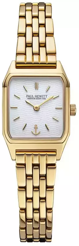 Damski zegarek Paul Hewitt PH-W-0330 to zegarek, który dzięki swemu wzornictwu zawsze będzie prezentował się dobrze. Tarcza zegarka jest w kolorze białym. Zegarek ten pokazuje godzinę w formacie analogowym dzięki czemu odczyt jest intuicyjny. Koperta jest w kolorze złotym szeroka jest na 20 mm oraz ma grubość 5 mm - w kształcie prostokątnym.