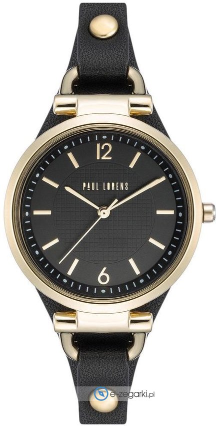 Model PL3652A-1A2 marki Paul Lorens to stylowy zegarek naręczny damski, który jest wyposażony w ciekawe rozwiązania oraz funkcje. Charakterystyczny wygląd czasomierza uzyskano m.in. poprzez cyferblat w kolorze czarnym. Aktualna godzina zaprezentowana jest w sposób analogowy co niezmiernie łatwo pozwala ją odczytać. Koperta w odcieniach koloru złotego szeroka jest na 32 mm - wyróżnia się okrągłym kształtem.