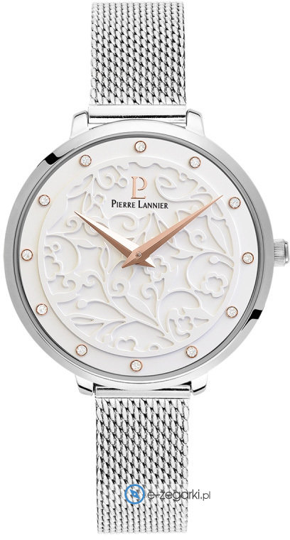 Zegarek damski 369F608 marki Pierre Lannier to stylowe połączenie funkcjonalności i modnego wzornictwa. Stylu nadaje wysokiej klasy tarcza w kolorze białym. Godzina prezentowana jest w sposób analogowy co intuicyjnie pozwala ją odczytać. Koperta jest w kolorze srebrnym szeroka jest na 33 mm - charakteryzuje się okrągłym kształtem.