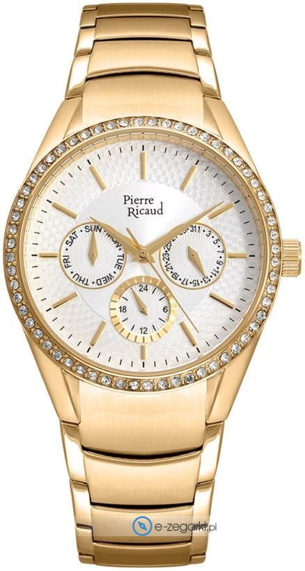 Damski zegarek Pierre Ricaud P21032.1113QFZ to zegarek, który dzięki swemu wzornictwu zawsze będzie prezentował się dobrze. Tarcza zegarka jest w kolorze białym. Zegarek ten prezentuje aktualny czas w formacie analogowym dzięki temu odczyt jest intuicyjny. Koperta w odcieniach koloru złotego szeroka jest na 36 mm oraz ma grubość 8 mm - charakteryzuje się owalnym kształtem.