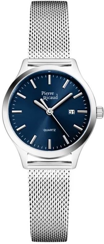 Zegarek damski P51094.5115Q marki Pierre Ricaud to dobra pozycja dla ludzi ceniących sobie dbałość o szczegóły jak również sprawne funkcjonowanie mechanizmów. Wysokiej jakości cyferblat zegarka pokryto niebieskim kolorem. Aktualna godzina prezentowana jest w sposób analogowy co intuicyjnie pozwala ją odczytać. Koperta została ozdobiona kolorem srebrnym szeroka jest na 37 mm oraz ma grubość 7 mm - w kształcie okrągłym.