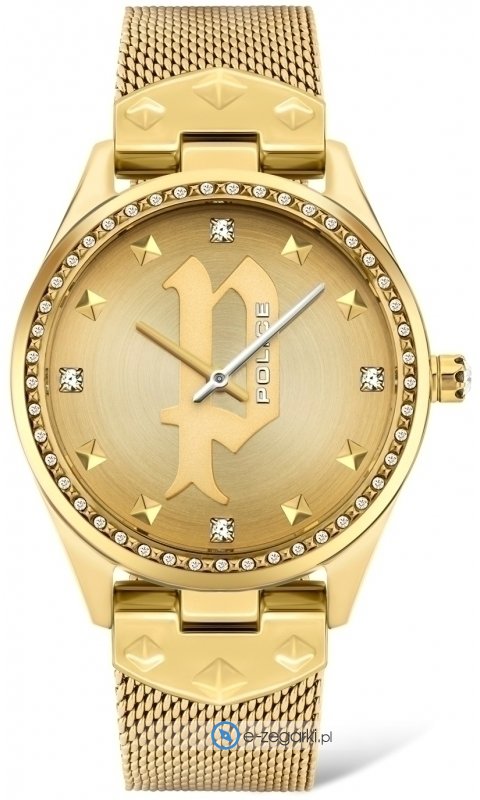 Zegarek damski PL.16029MSG/22MM marki Police to idealne połączenie funkcjonalności oraz ciekawego wzornictwa. Wysokiej jakości cyferblat zegarka pokryto złotym kolorem. Zegarek ten pokazuje godzinę w formacie analogowym dzięki czemu odczyt jest intuicyjny. Koperta w odcieniach koloru złotego szeroka jest na 36 mm oraz ma grubość 10 mm - ma okrągły kształt.