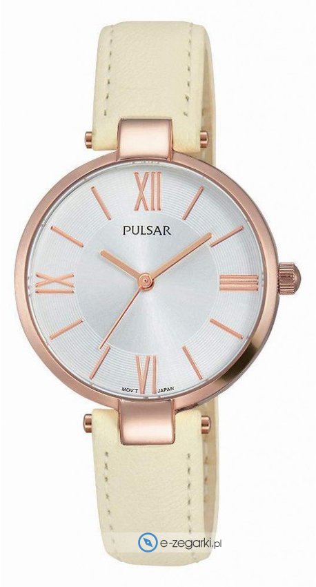 Damski zegarek Pulsar PH8246X1 to zegarek, który dzięki swemu wzornictwu zawsze będzie prezentował się dobrze. Pokazana metodą analogową aktualna godzina jest czytelna i szybka do odczytania. Koperta szeroka jest na 22,55 mm oraz ma grubość 6.80 mm.