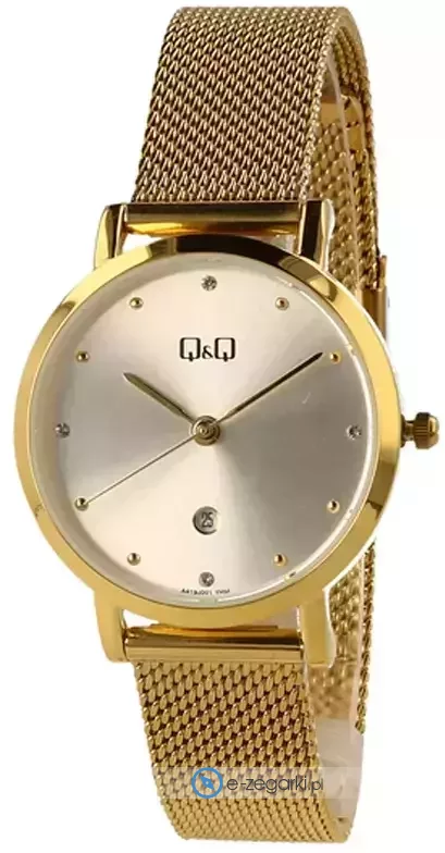 Zegarek A419-001 wyposażony jest w mechanizm zasilany tradycyjną baterią kwarcową. Wytrzymała bransoleta koloru złotego zrobiona ze stali nierdzewnej zapewnia wysoką jakość i trwałość.