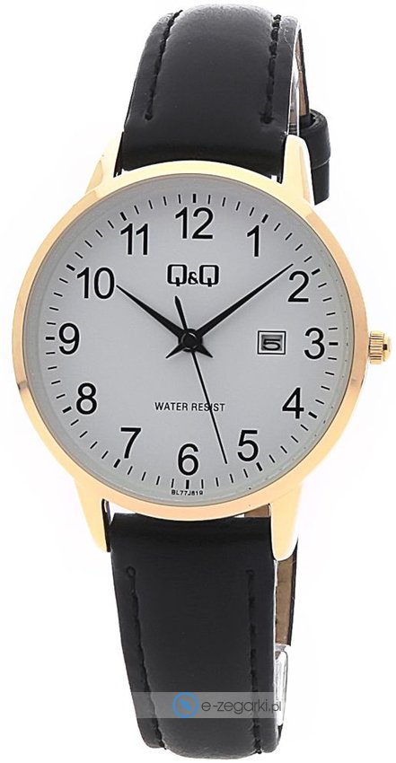 Zegarek damski BL77-819 marki Q&Q to dobra propozycja dla osób ceniących sobie dbałość o szczegóły oraz bezproblemowe zachowanie mechanizmów. Niebanalną stylistykę czasomierza uzyskano z pomocą tarczy w kolorze białym. Aktualna godzina pokazywana jest w sposób analogowy co intuicyjnie pozwala ją odczytać. Koperta jest w kolorze złotym szeroka jest na 30 mm oraz ma grubość 8 mm - ma okrągły kształt.