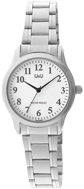 Zegarek damski C03A-001P marki Q&Q to idealna pozycja dla ludzi ceniących sobie dbałość o szczegóły a także sprawne działanie mechanizmów. Wysokiej jakości cyferblat zegarka pokryto białym kolorem. Zegarek ten pokazuje aktualny czas w formacie analogowym dzięki temu odczyt jest bezproblemowy. Koperta w barwach koloru srebrnego szeroka jest na 28 mm oraz ma grubość 7 mm - posiada okrągły kształt.