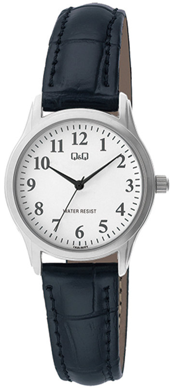 Model C03A-007P marki Q&Q to stylowy zegarek naręczny damski, który posiada pomysłowe rozwiązania i funkcje. Tarcza zegarka jest w kolorze białym. Zaprezentowana metodą analogową aktualna godzina jest czytelna i szybka do sprawdzenia. Koperta jest ozdobiona kolorem srebrnym szeroka jest na 28 mm oraz ma grubość 7 mm - w kształcie okrągłym.