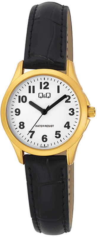Damski zegarek Q&Q C05A-007P to zegarek, który dzięki swemu wzornictwu zawsze będzie prezentował się dobrze. Atrakcyjny wygląd zegarka uzyskano także dzięki tarczy w kolorze białym. Godzina przedstawiona jest w sposób analogowy co intuicyjnie pozwala ją odczytać. Koperta jest ozdobiona kolorem złotym szeroka jest na 28 mm oraz ma grubość 7 mm - w kształcie okrągłym.