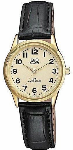 Zegarek damski C215-103 marki Q&Q to dobra pozycja dla ludzi ceniących sobie dbałość o detale a także bezproblemowe zachowanie mechanizmów. Wysokiej jakości tarczę zegarka pokryto złotym kolorem. Pokazana metodą analogową bieżąca godzina jest czytelna i prosta do odczytania. Koperta została ozdobiona kolorem złotym szeroka jest na 30 mm oraz ma grubość 6 mm - wyróżnia się okrągłym kształtem.