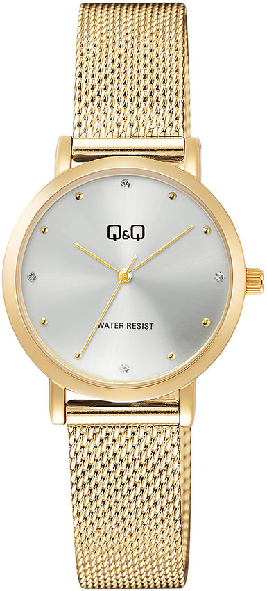 Model C35A-006P marki Q&Q to stylowy zegarek naręczny damski, który posiada pomysłowe rozwiązania i funkcje. Atrakcyjny wygląd zegarka uzyskano m.in. poprzez cyferblat w kolorze srebrnym. Zegarek ten prezentuje godzinę w formacie analogowym dzięki temu odczyt jest bardzo łatwy. Koperta jest w kolorze złotym szeroka jest na 31 mm oraz ma grubość 8 mm - charakteryzuje się okrągłym kształtem.