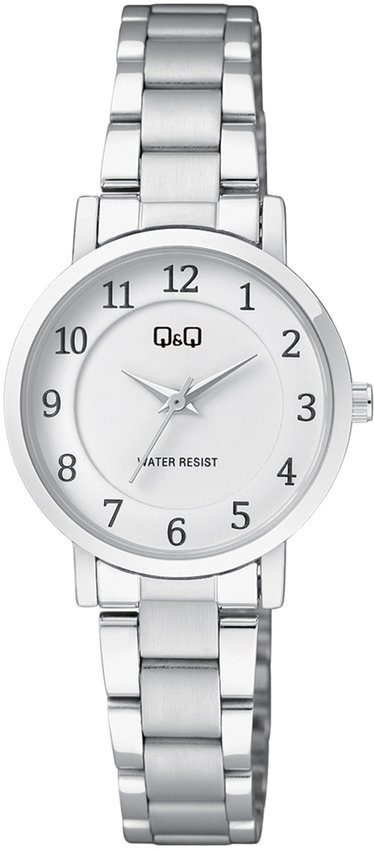 Zegarek damski C60A-003P marki Q&Q to ciekawa pozycja dla ludzi ceniących sobie dbałość o detale jak również sprawne funkcjonowanie mechanizmów. Charakteru nadaje wysokiej jakości tarcza w kolorze srebrnym. Godzina zaprezentowana jest w sposób analogowy co intuicyjnie pozwala ją odczytać. Koperta jest w kolorze srebrnym szeroka jest na 30 mm oraz ma grubość 8 mm - wyróżnia się okrągłym kształtem.