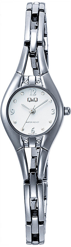 Damski zegarek Q&Q F00A-001P to zegarek, który dzięki swemu wzornictwu zawsze będzie prezentował się dobrze. Ciekawy wygląd czasomierza uzyskano także dzięki tarczy w kolorze białym. Aktualna godzina prezentowana jest w sposób analogowy co niezmiernie łatwo pozwala ją odczytać. Koperta została pokryta kolorem srebrnym szeroka jest na 19 mm oraz ma grubość 7 mm - w kształcie okrągłym.