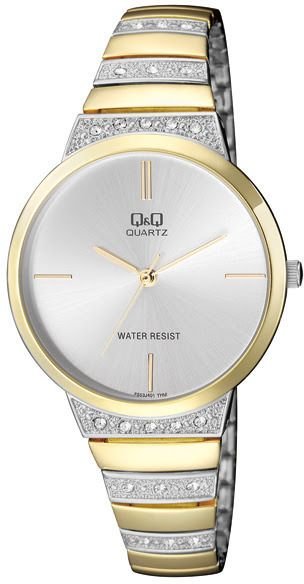 Damski zegarek Q&Q F553-401 to zegarek, który dzięki swemu wzornictwu zawsze będzie prezentował się dobrze. Charakter zapewnia wysokiej klasy cyferblat w kolorze srebrnym. Zaprezentowana metodą analogową aktualna godzina jest czytelna i szybka do sprawdzenia. Koperta w barwach koloru złotego szeroka jest na 36 mm oraz ma grubość 82 mm - posiada okrągły kształt.