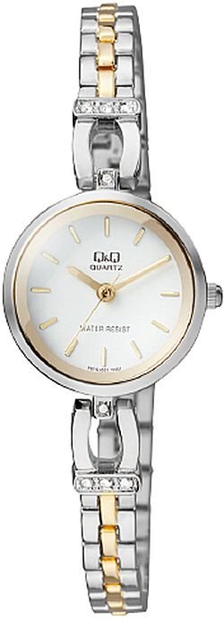 Zegarek damski F619-401 marki Q&Q to idealna pozycja dla ludzi ceniących sobie dbałość o szczegóły oraz bezawaryjne funkcjonowanie mechanizmów. Nieschematyczny wygląd czasomierza osiągnięto dzięki tarczy w kolorze białym. Koperta została pokryta kolorem złotym szeroka jest na 23 mm oraz ma grubość 9 mm.