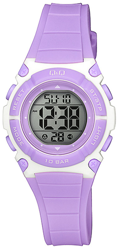 Kwarcowa bateria umieszczona w modelu M187-004 zapewnia zasilanie jego mechanizmu. Pasek fioletowego koloru wykonany jest z wysokiej jakości tworzywa sztucznego.