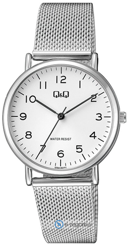 Zegarek Q05A-001P posiada kwarcowy mechanizm zasilany klasyczną baterią. Wytrzymała bransoleta srebrnego koloru wytworzona ze stali nierdzewnej gwarantuje powyższoną jakość i trwałość.