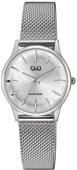Zegarek Q08A-001P posiada kwarcowy mechanizm zasilany normalną baterią. Wytrzymała bransoleta jest w kolorze srebrnym zrobiona ze stali nierdzewnej gwarantuje wysoką jakość oraz trwałość.