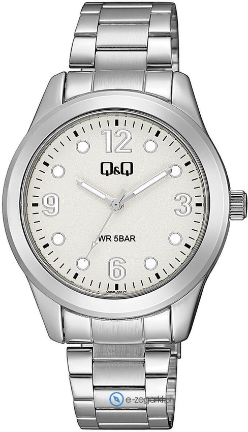 Zegarek Q35B-001P zasilany jest bateryjnie - ogniwo kwarcowe. Wytrzymała bransoleta jest w kolorze srebrnym zrobiona ze stali nierdzewnej gwarantuje powyższoną jakość i trwałość.
