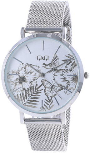 Model QA20-231 marki Q&Q to gustowny zegarek naręczny damski, który jest wyposażony w pomysłowe rozwiązania i funkcje. Wysokiej trwałości tarczę zegarka ozdobiono białym kolorem. Aktualna godzina zaprezentowana jest w sposób analogowy co intuicyjnie pozwala ją odczytać. Koperta w barwach koloru srebrnego szeroka jest na 39 mm oraz ma grubość 7.5 mm - ma okrągły kształt.