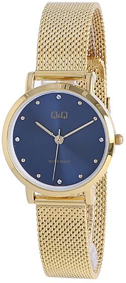 Model QA21-012 marki Q&Q to stylowy zegarek naręczny damski, który jest wyposażony w pomysłowe rozwiązania oraz funkcje. Charakteru dodaje wysokiej jakości tarcza w kolorze niebieskim. Zaprezentowana metodą analogową bieżąca godzina jest czytelna i łatwa do odczytania. Koperta została pokryta kolorem złotym szeroka jest na 30 mm oraz ma grubość 7.3 mm - w kształcie okrągłym.