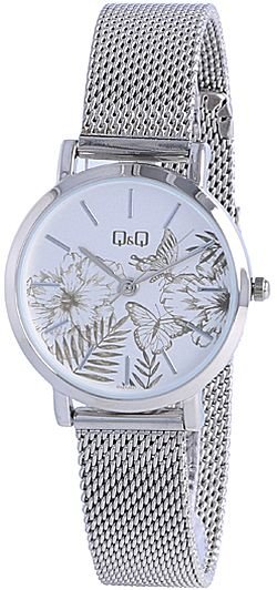 Damski zegarek Q&Q QA21-231 to zegarek, który dzięki swemu wzornictwu zawsze będzie prezentował się dobrze. Ciekawy wygląd zegarka osiągnięto m.in. poprzez tarczę w kolorze białym. Aktualna godzina przedstawiona jest w sposób analogowy co bez trudu pozwala ją odczytać. Koperta w barwach koloru srebrnego szeroka jest na 30 mm oraz ma grubość 7.3 mm - posiada okrągły kształt.