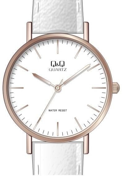 Zasilanie zegarka QA21-800 to standardowa bateria kwarcowa. Pasek w tonacji koloru białego wykonany jest z wysokiej klasy skóry gwarantującej trwałość i komfort noszenia.
