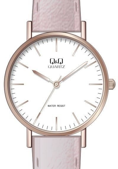 Kwarcowa bateria zamontowana w modelu QA21-803 zapewnia zasilanie jego mechanizmu. Pasek koloru różowego zrobiony jest z wysokiej jakości skóry zapewniającej trwałość i komfort noszenia.