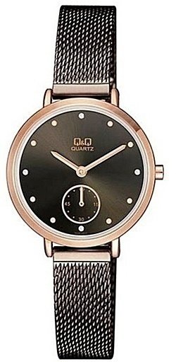 Zegarek damski QA97-412 marki Q&Q to ciekawa pozycja dla osób ceniących sobie dbałość o detale jak również sprawne zachowanie mechanizmów. Atrakcyjny wygląd zegarka osiągnięto m.in. poprzez tarczę w kolorze czarnym. Pokazana metodą analogową bieżąca godzina jest czytelna i szybka do odczytania. Koperta szeroka jest na 30 mm oraz ma grubość 7.1 mm - wyróżnia się okrągłym kształtem.