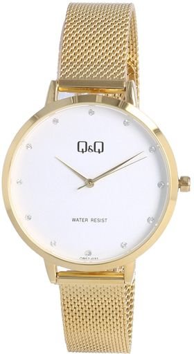 Damski zegarek Q&Q QB57-031 to zegarek, który dzięki swemu wzornictwu zawsze będzie prezentował się dobrze. Wysokiej jakości tarczę zegarka ozdobiono białym kolorem. Zaprezentowana metodą analogową aktualna godzina jest czytelna i prosta do sprawdzenia. Koperta jest w kolorze złotym szeroka jest na 36 mm oraz ma grubość 7.7 mm - w kształcie okrągłym.