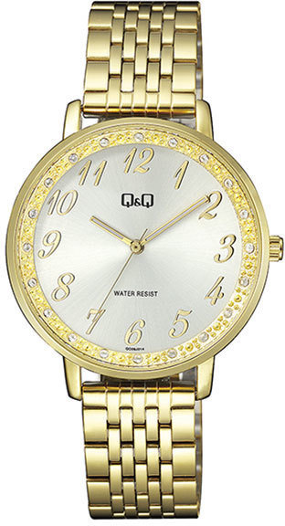 Zegarek QC09-014 zasilany jest bateryjnie - ogniwo kwarcowe. Wytrzymała bransoleta w tonacji koloru złotego wykonana ze stali szlachetnej zapewnia wysoką jakość i trwałość.