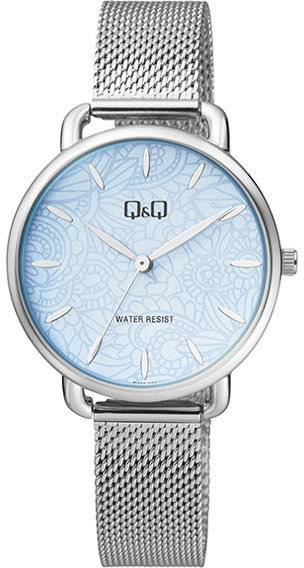 Zegarek damski QC27-202 marki Q&Q to idealna propozycja dla osób ceniących sobie dbałość o szczegóły a także bezproblemowe działanie mechanizmów. Charakter zapewnia wysokiej klasy cyferblat w kolorze niebieskim. Aktualna godzina pokazywana jest w sposób analogowy co intuicyjnie pozwala ją odczytać. Koperta jest w kolorze srebrnym szeroka jest na 35 mm oraz ma grubość 9 mm - wyróżnia się okrągłym kształtem.