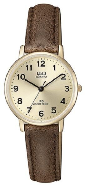 Zegarek damski QZ01-103 marki Q&Q to stylowe połączenie funkcjonalności oraz modnego wzornictwa. Wysokiej jakości tarczę zegarka pokryto beżowym kolorem. Pokazana metodą analogową aktualna godzina jest czytelna i prosta do odczytania. Koperta w barwach koloru złotego szeroka jest na 30 mm oraz ma grubość 8 mm - w kształcie okrągłym.