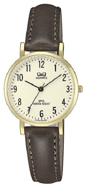 Model QZ03-103 marki Q&Q to stylowy zegarek naręczny damski, który posiada ciekawe rozwiązania oraz funkcje. Charakterystyczny wygląd czasomierza uzyskano poprzez cyferblat w kolorze beżowym. Koperta w odcieniach koloru złotego o grubości 75 mm - ma okrągły kształt.