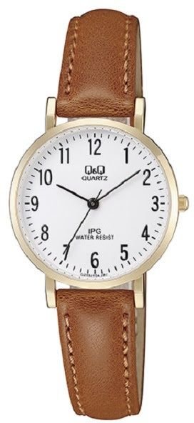Zegarek damski QZ03-104 marki Q&Q to stylowe połączenie funkcjonalności i modnego wzornictwa. Wysokiej trwałości cyferblat zegarka pokryto białym kolorem. Koperta została ozdobiona kolorem złotym o grubości 75 mm.